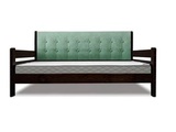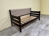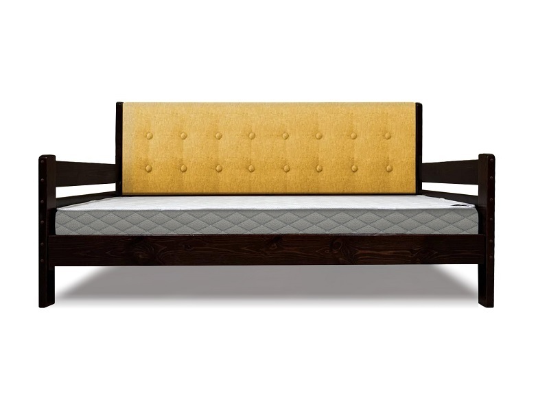 Кровать изготовлена из массива сосны с с мягкой спинкой.