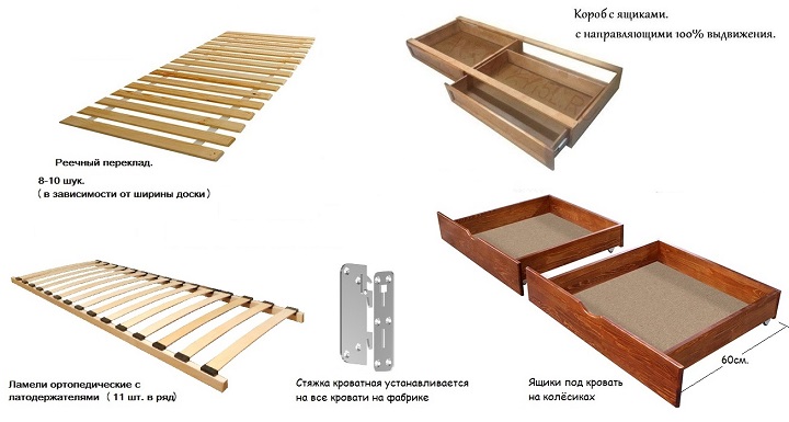 - Дополнительно ящики под кровать на колёсиках (в комплекте два ящика).