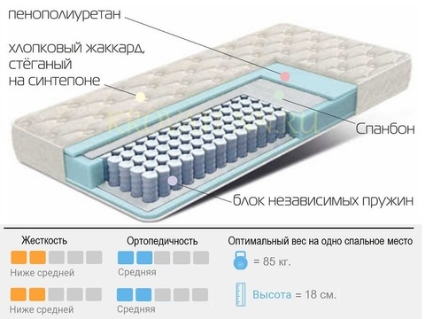 Жесткость: ниже средней; оптимальный вес: (80-90кг) Высота: 18 см.