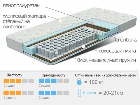 Жесткость: средняя; (100-110кг) Высота: 20 см.