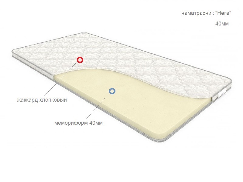 состав: наполнитель Мемориформ 40мм.(memory form)/ чехол: жаккард х/б двухсторонний стёганный на синтипоне 100гр.
