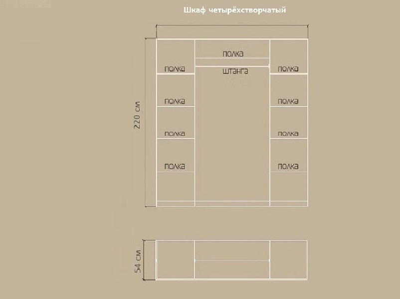 шкаф четырёхстворчатый "Нова-4" размер: (170\54\220)