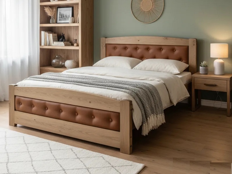 Кровать изготовлена из массива.